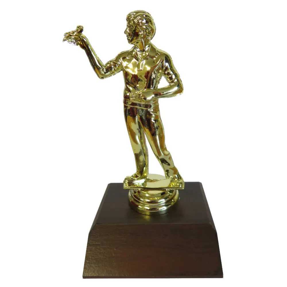Darts man figurine on a dark woodgrain base.