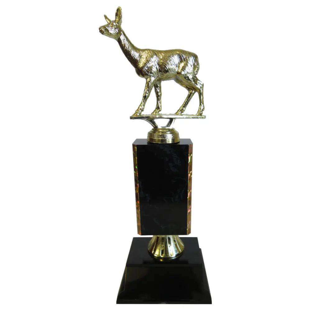 Deer Trophy with deer figurine on an MDF column with black marble finish.