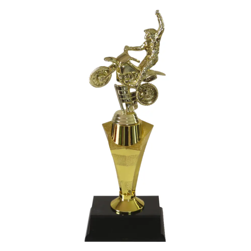 Dirt Bike Award with dirt bike figurine on a star shape pedestal.