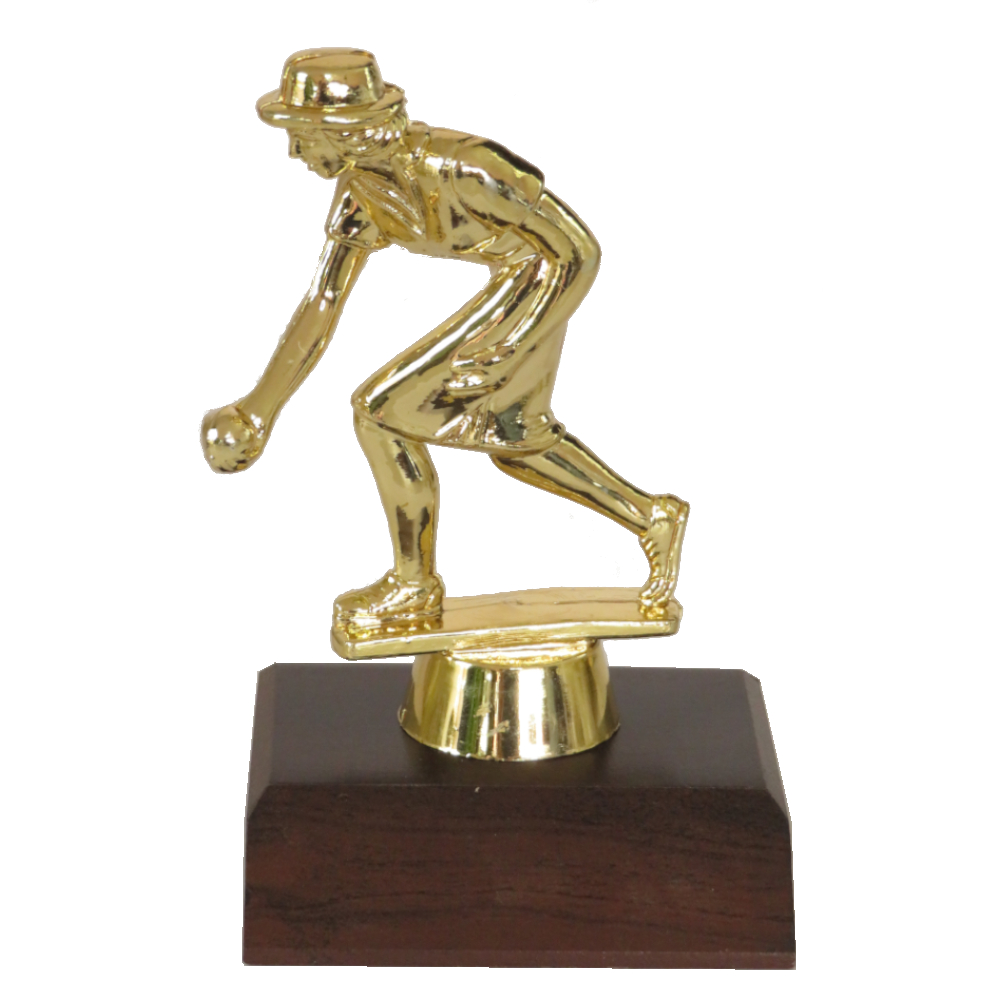 Lawn Bowls Female Figurine on a dark woodgrain base.