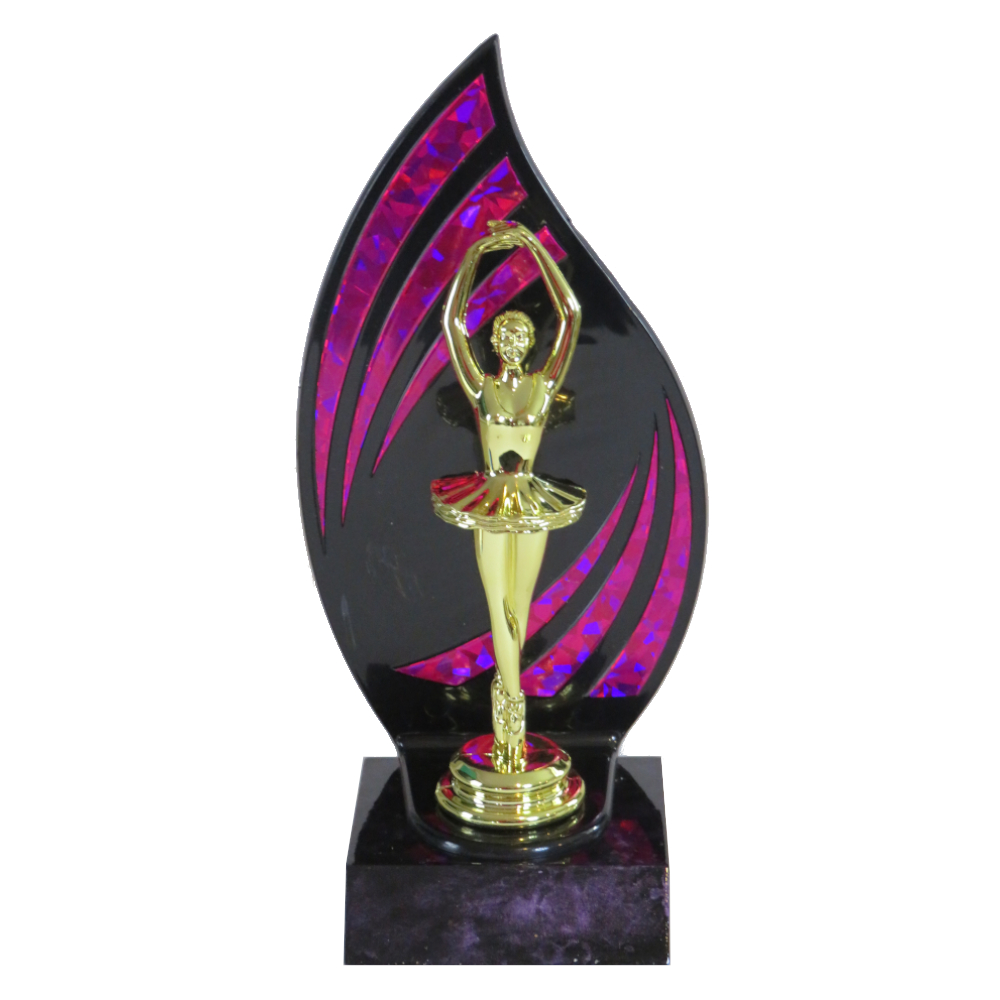 Flameback Ballerina Trophy with ballerina figurine set off by a purple flame back.