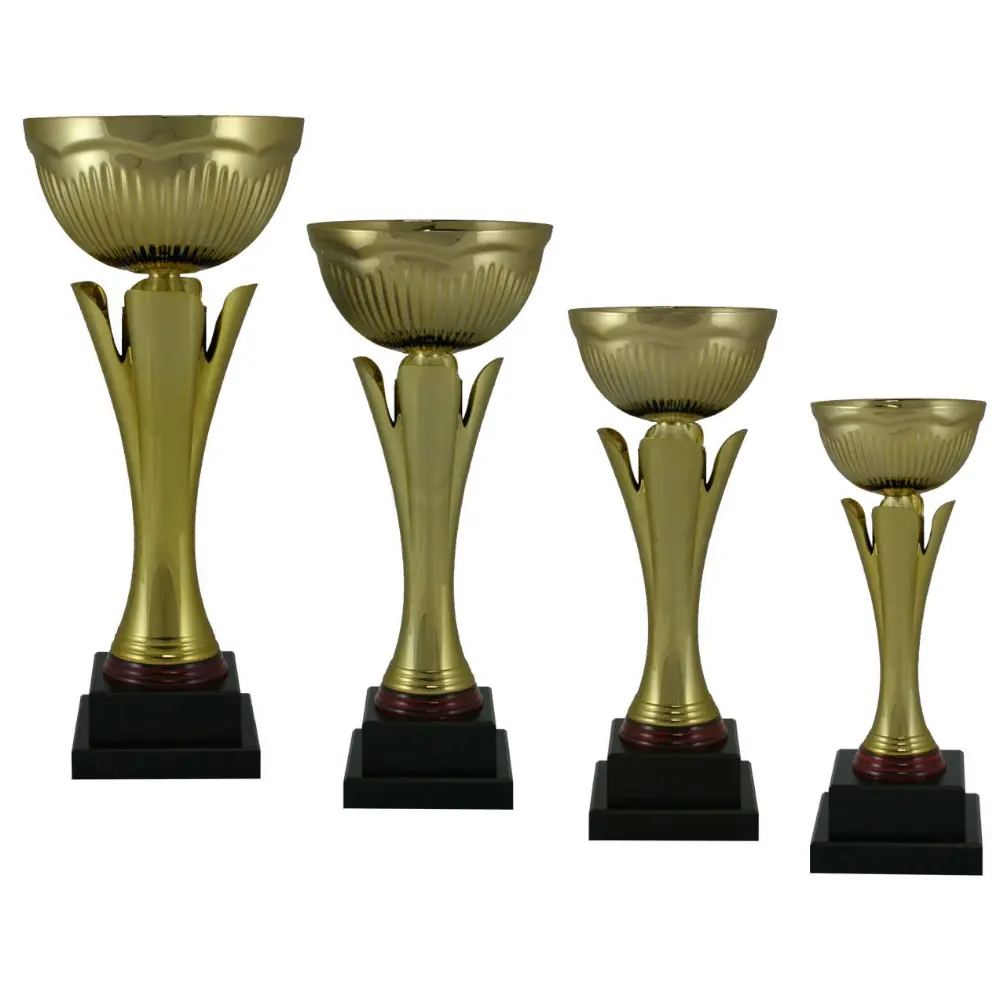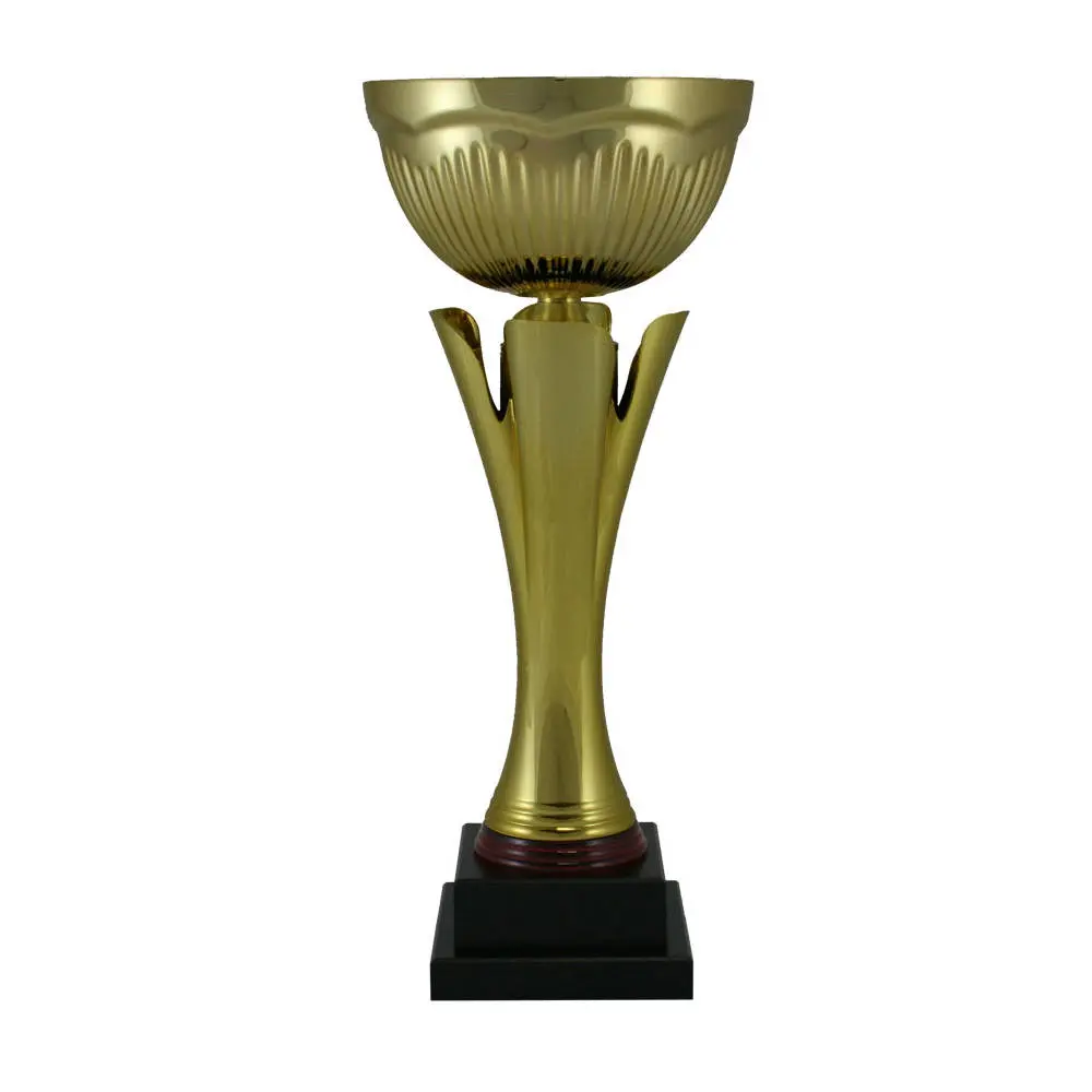 Stylish gold cup award made from high quality metal and plastic with coloured trim.