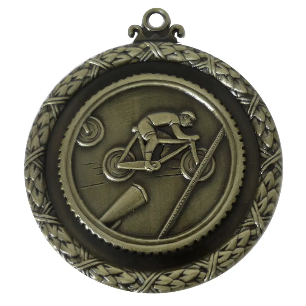 Gold Wreath Cycling Medal with hi-relief cycling image.