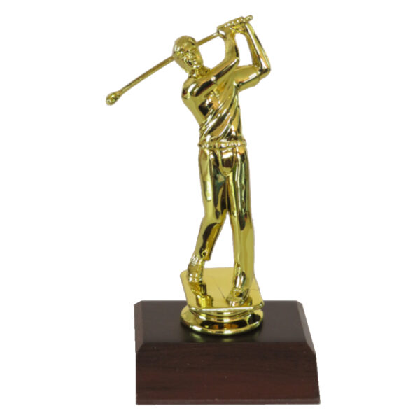 Golfer Male Figurine on a dark wood-grain base.