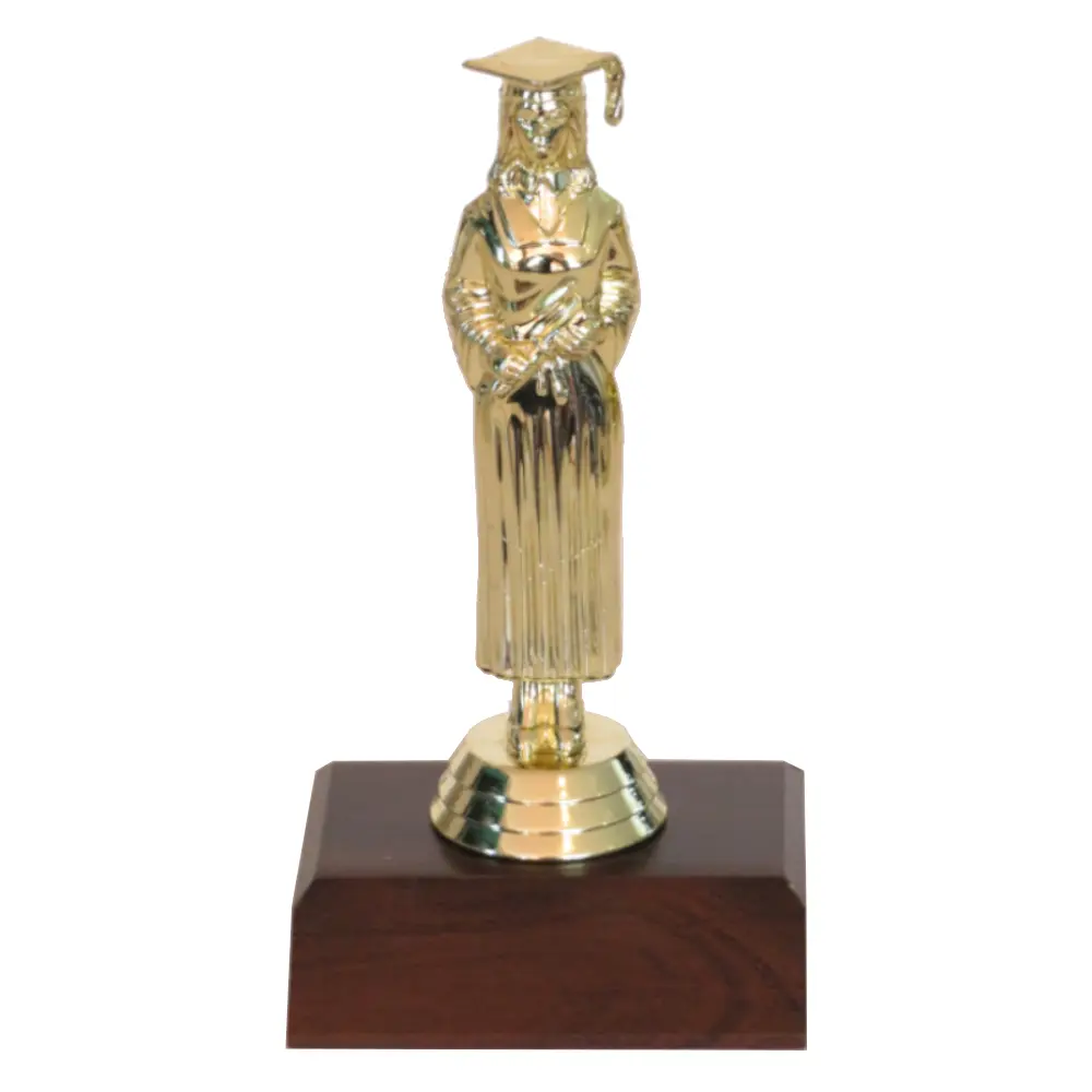 Graduation Girl Figurine on a dark wood grain base.