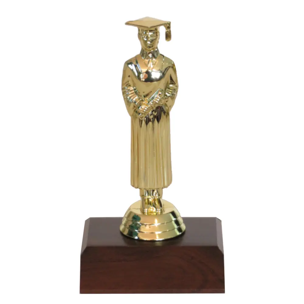Graduation Man Figurine on a dark woodgrain base.