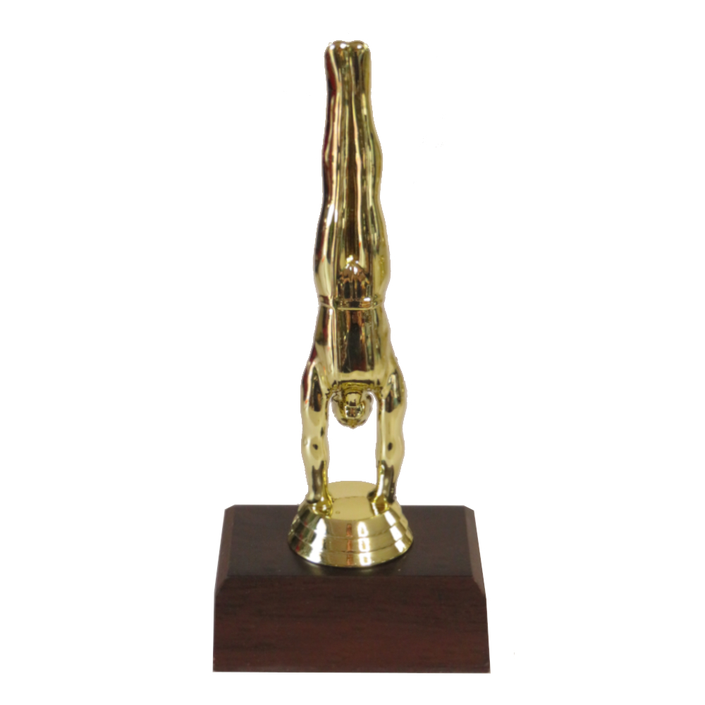 Gymnastics Male Handstand Figurine on a dark wood-grain base.