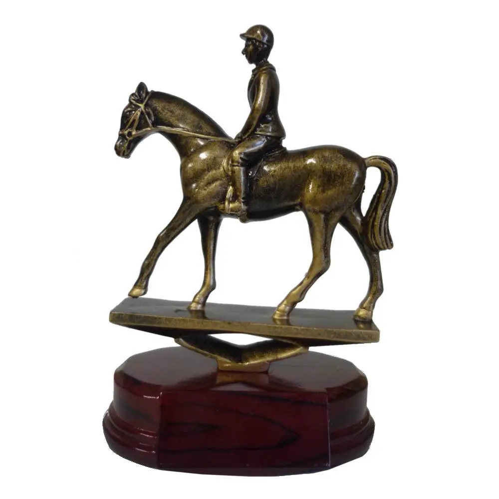 Horse and Rider Trophy with a male horse rider figure on a cherry wood base.