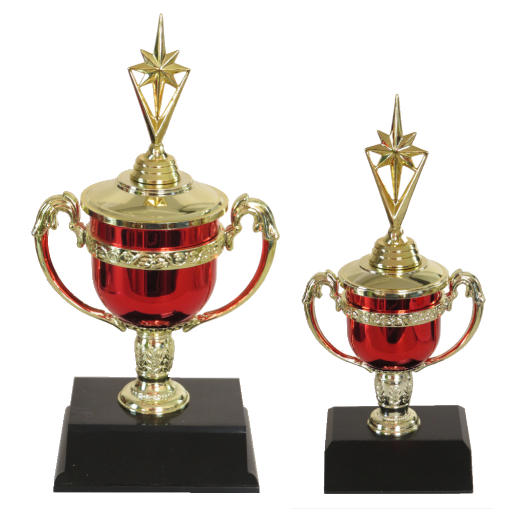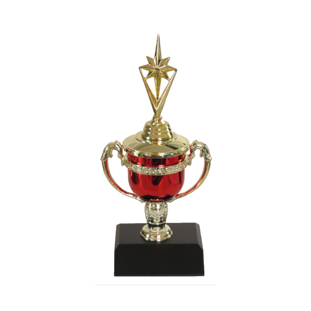 Piccoli Trophy Cup with star figurine and red and gold finish.