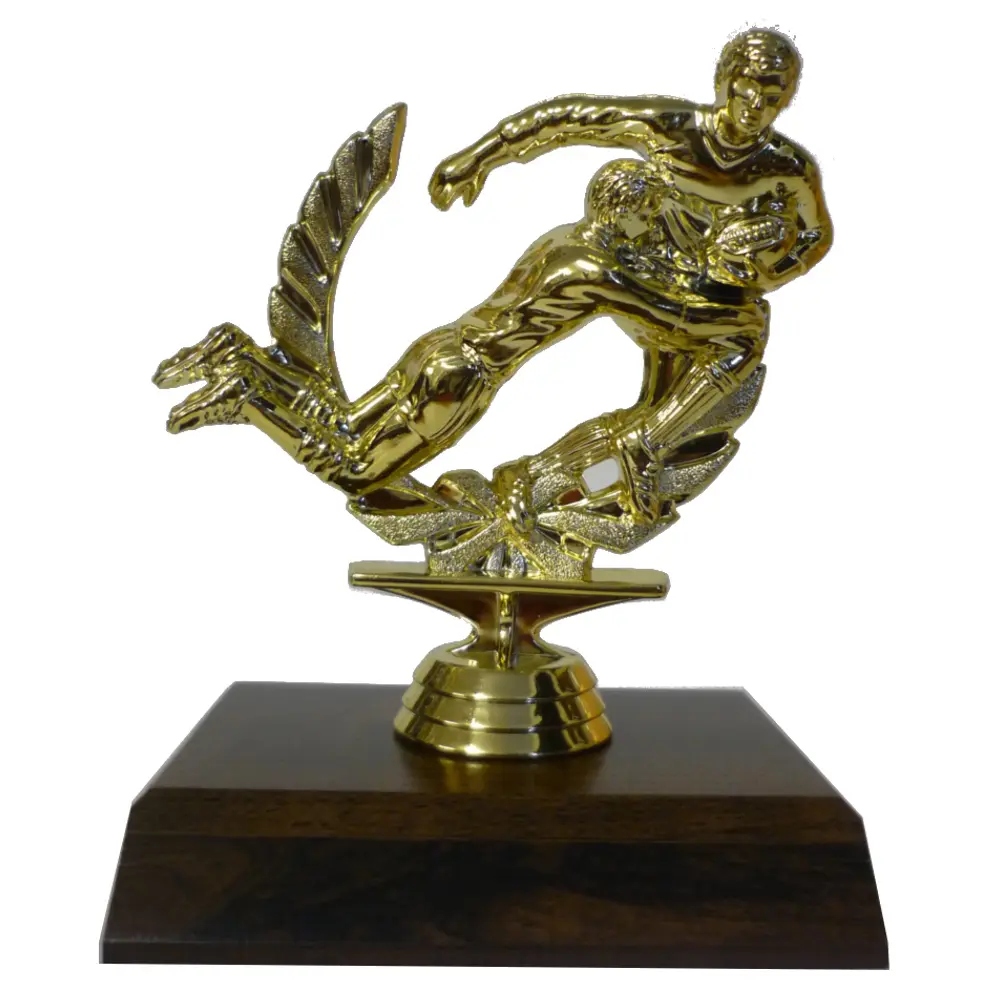 Rugby double figure on a dark woodgrain base.