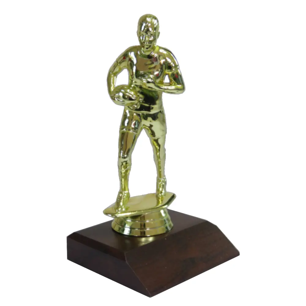 Rugby Female Figurine on a dark wood-grain base.