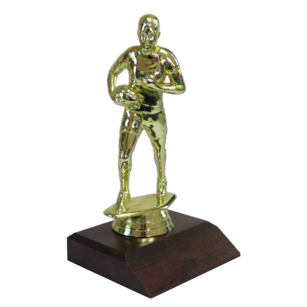 Rugby Female Figure on a dark wood-grain base.