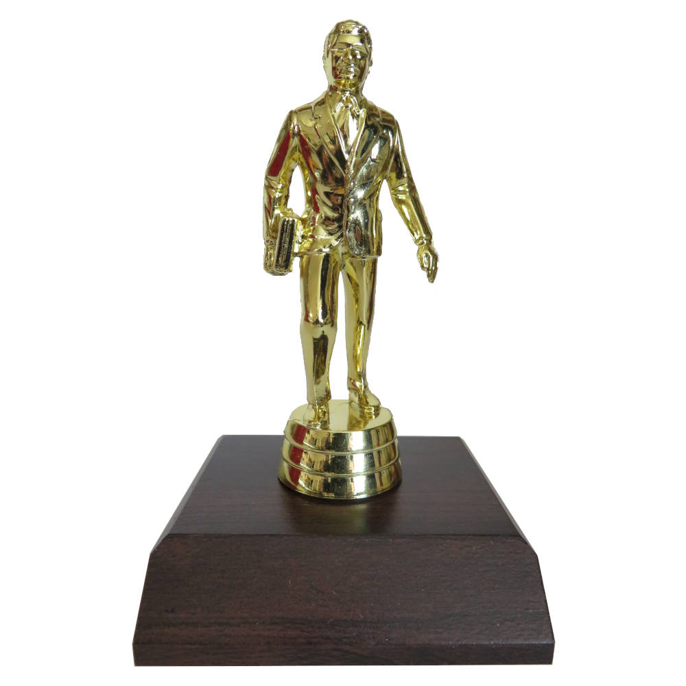 Salesman Figurine on a dark wood-grain base.