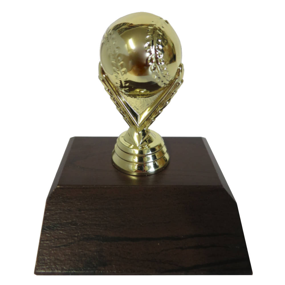 Softball figurine on a dark woodgrain base.