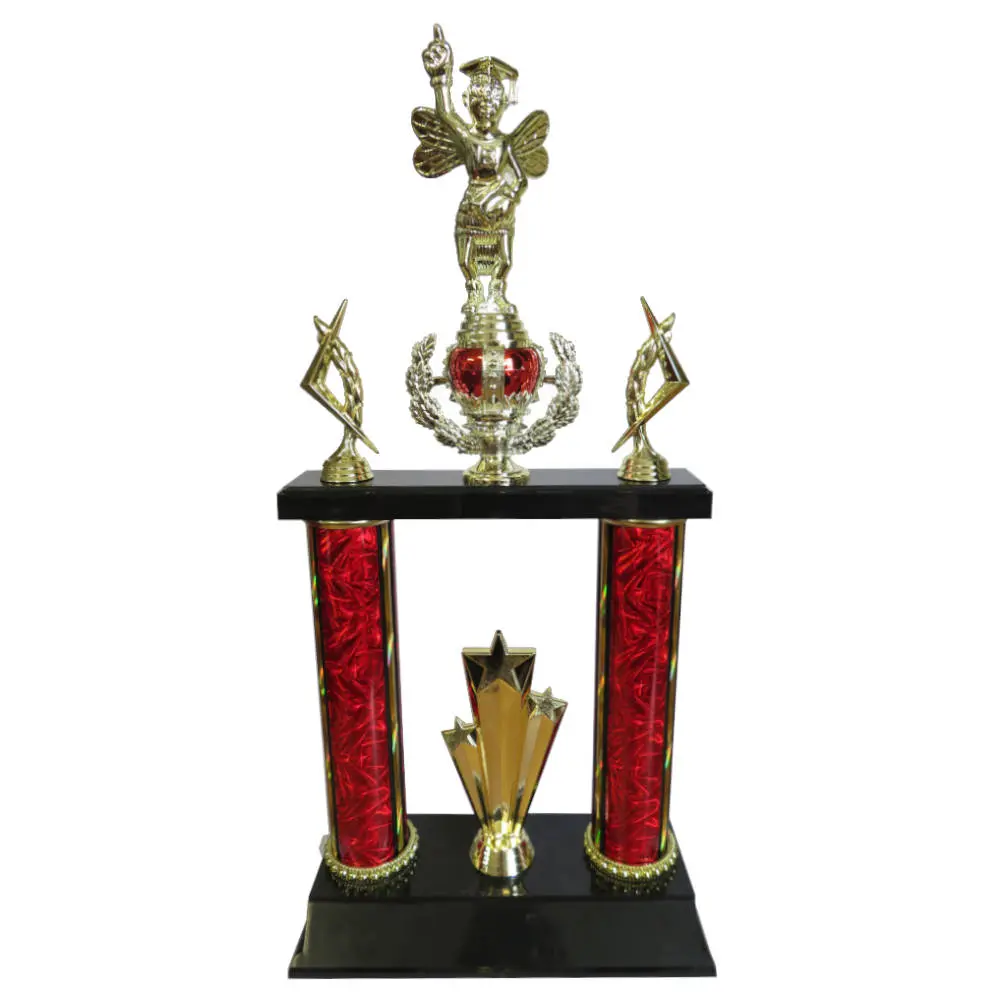Spelling Bee Champion Award with spelling bee and shooting stars figurine. A red and gold crown shaped cup adds a regal touch.