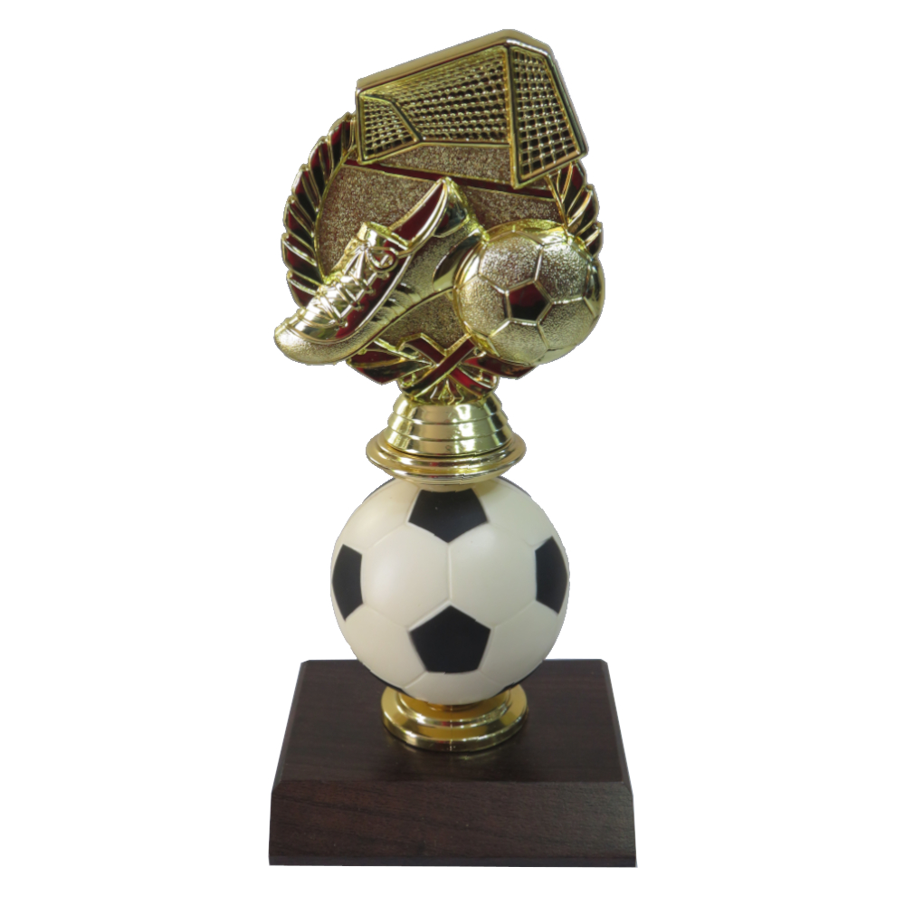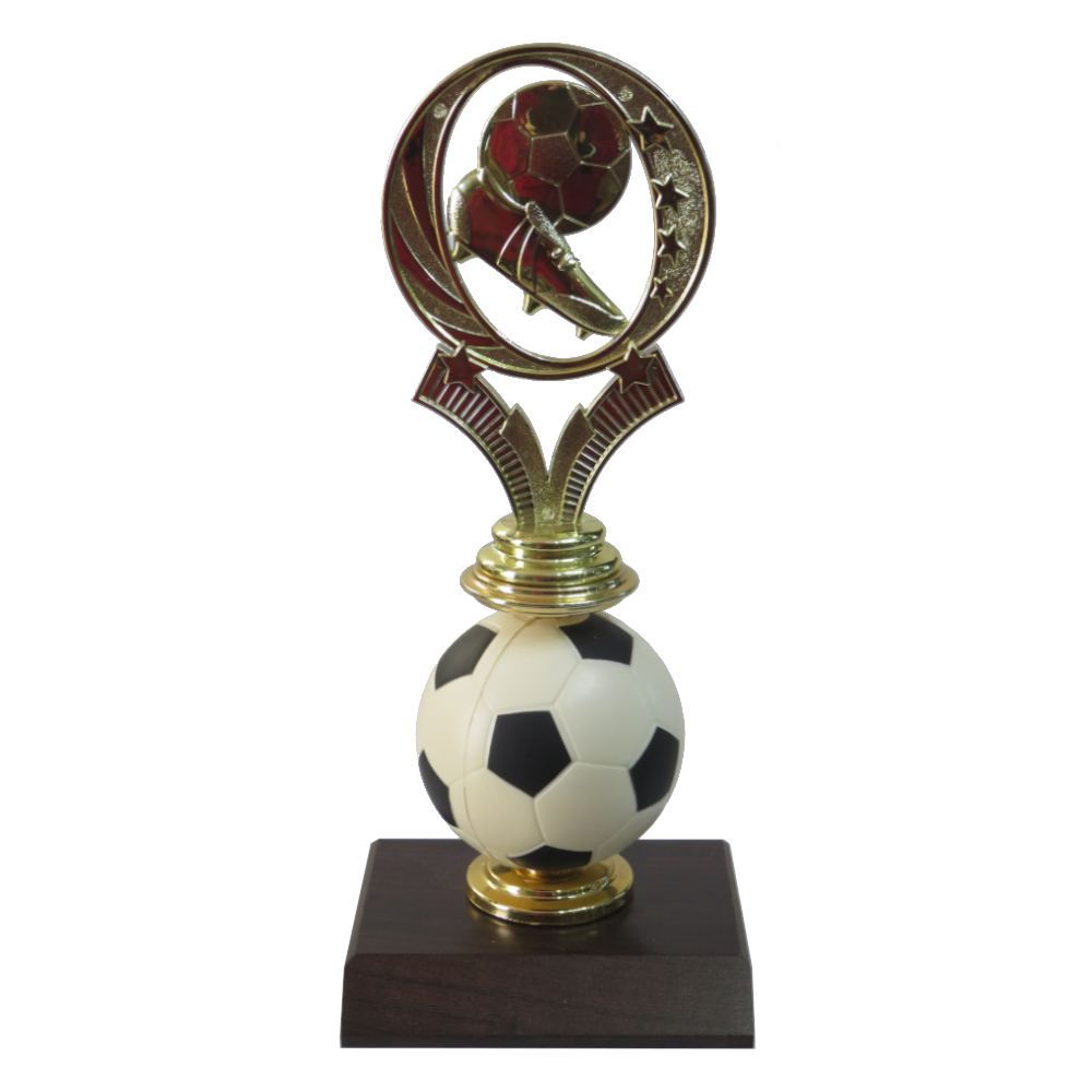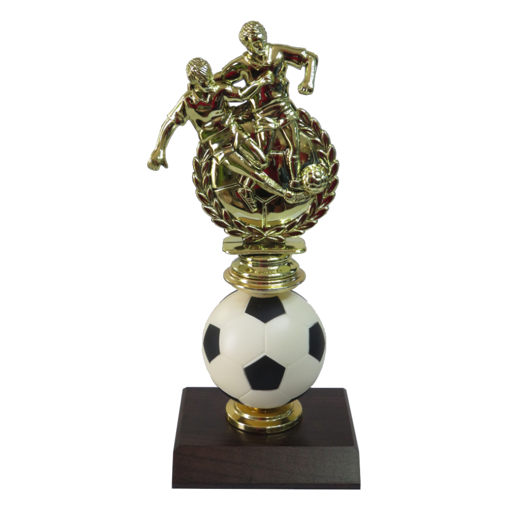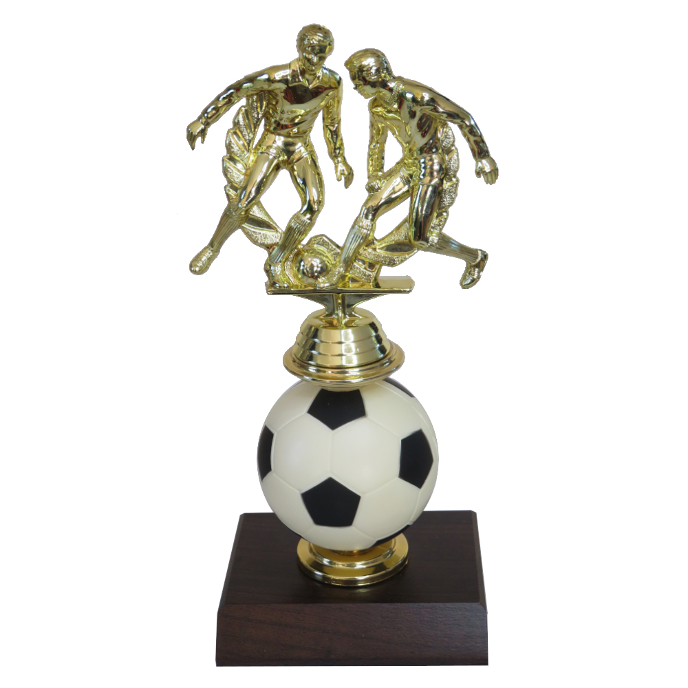 Spinning Soccer Ball Trophy with soft spinning soccer ball and soccer figurine on top.