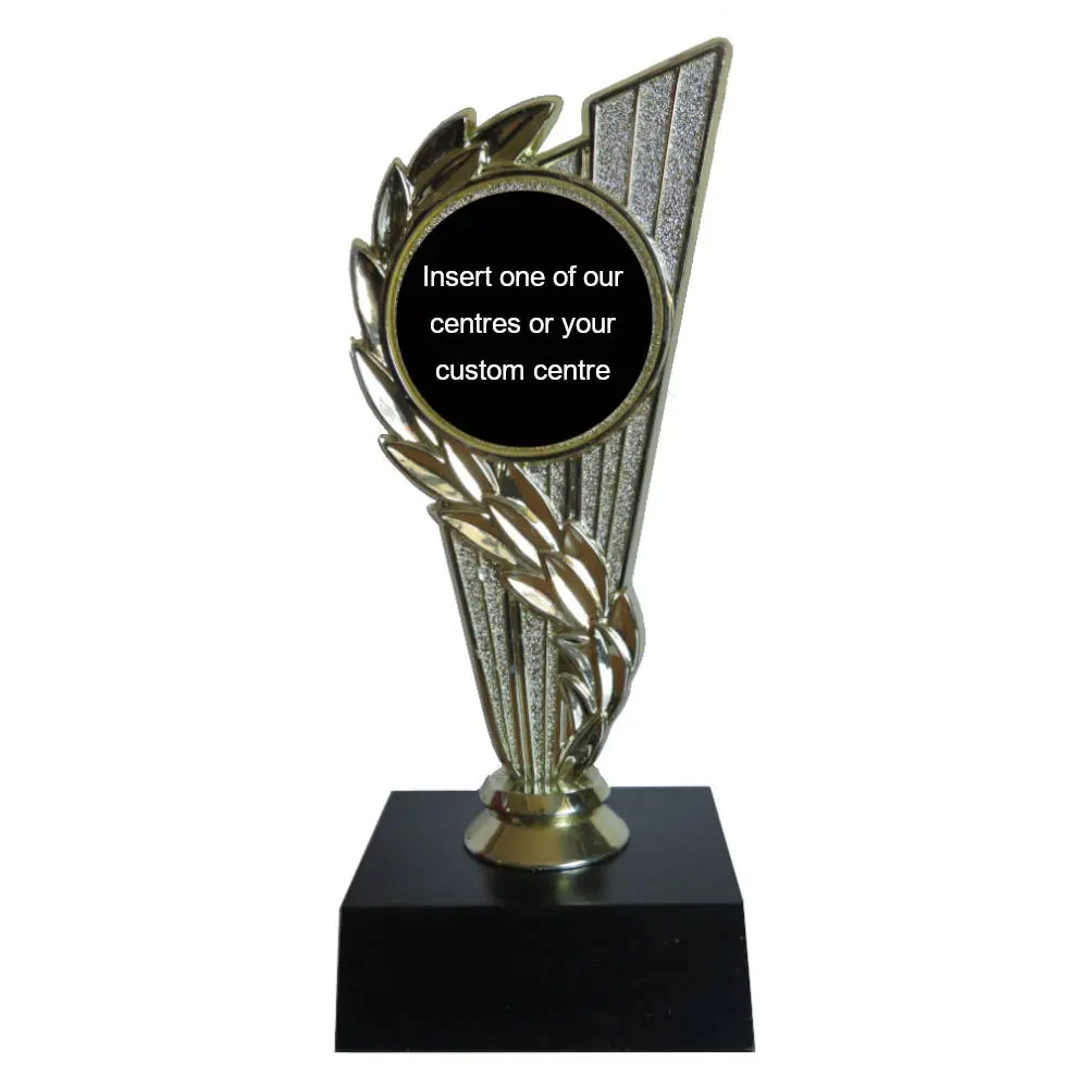 Insert holder trophy with decorative leaf pattern. ย Comes with one of ourย standard centresย or your own custom design.