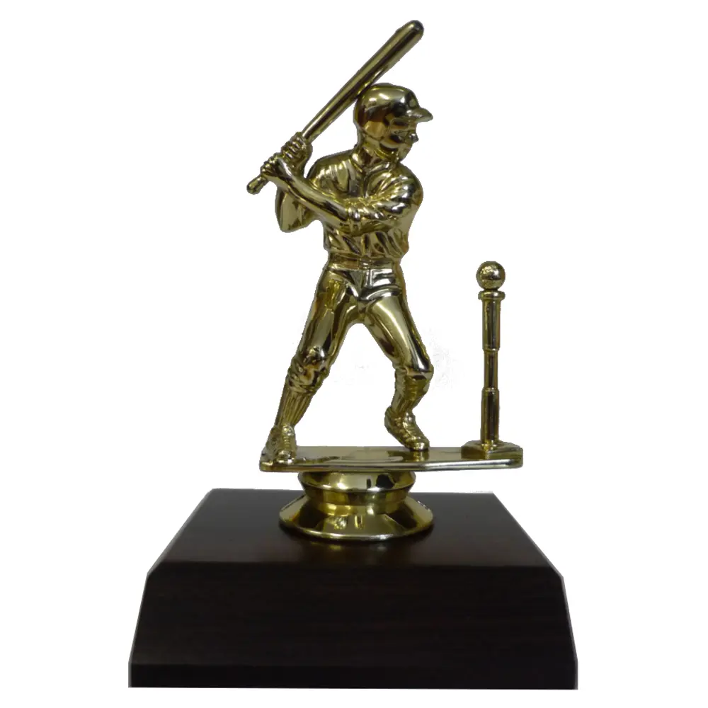 Tee Ball Male Figurine on dark woodgrain finish base.