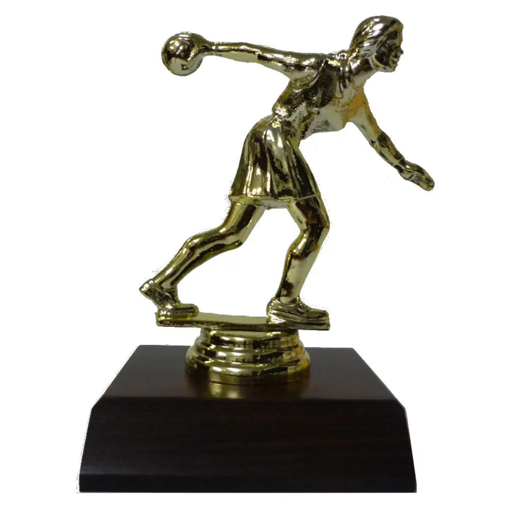 Ten Pin Girl Figurine on a dark woodgrain base.