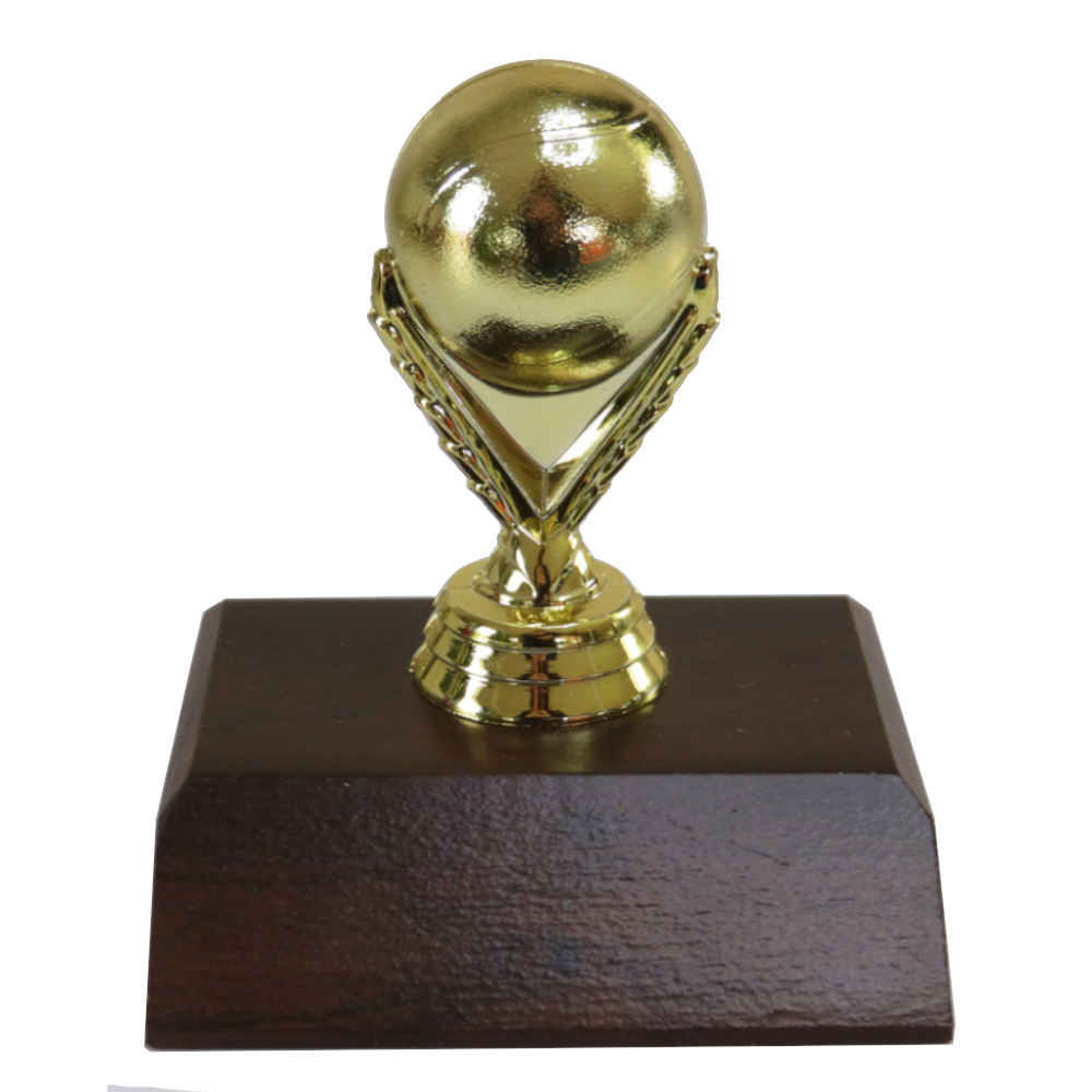 Gold Tennis Ball Figure on a dark woodgrain base.