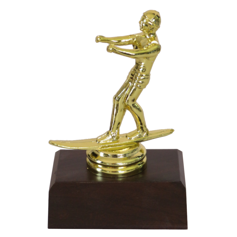 Water Skier Figurine on a dark woodgrain base.